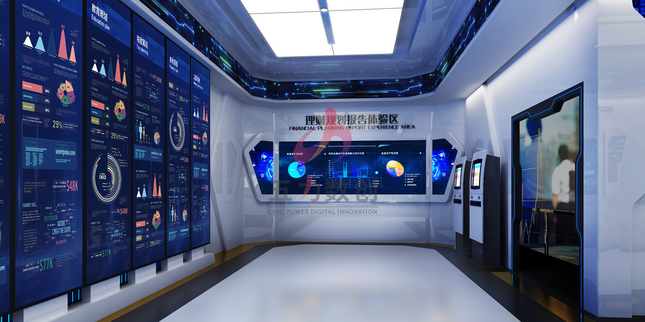 五力數(shù)創(chuàng)根據(jù)中產(chǎn)之家需求,為中產(chǎn)之家智能服務(wù)體驗(yàn)中心打造富有科技感的數(shù)據(jù)展示空間,營(yíng)造沉浸式體感互動(dòng)的主題空間,綜合展示企業(yè)綜合實(shí)力。
